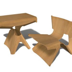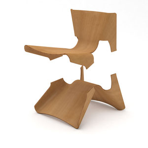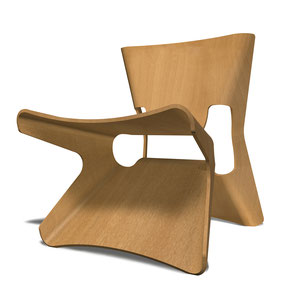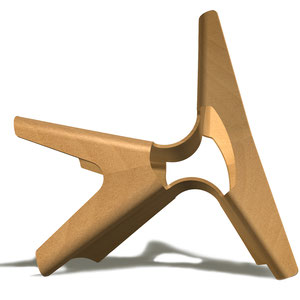 Ein Sitzmöbel aus zwei identischen Schichtholz Teilen.